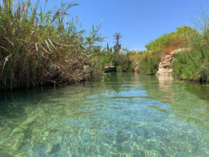 מסלול טיול במים בנחל הקיבוצים, שנמצא בעמק המעיינות.